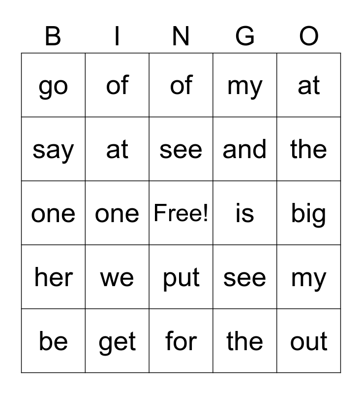 ⚠ This card has duplicate items: I (2), we (2), to (2), see (2), the (2), me (2), of (2), her (2), my (2), go (2), one (2), at (2), out (2)