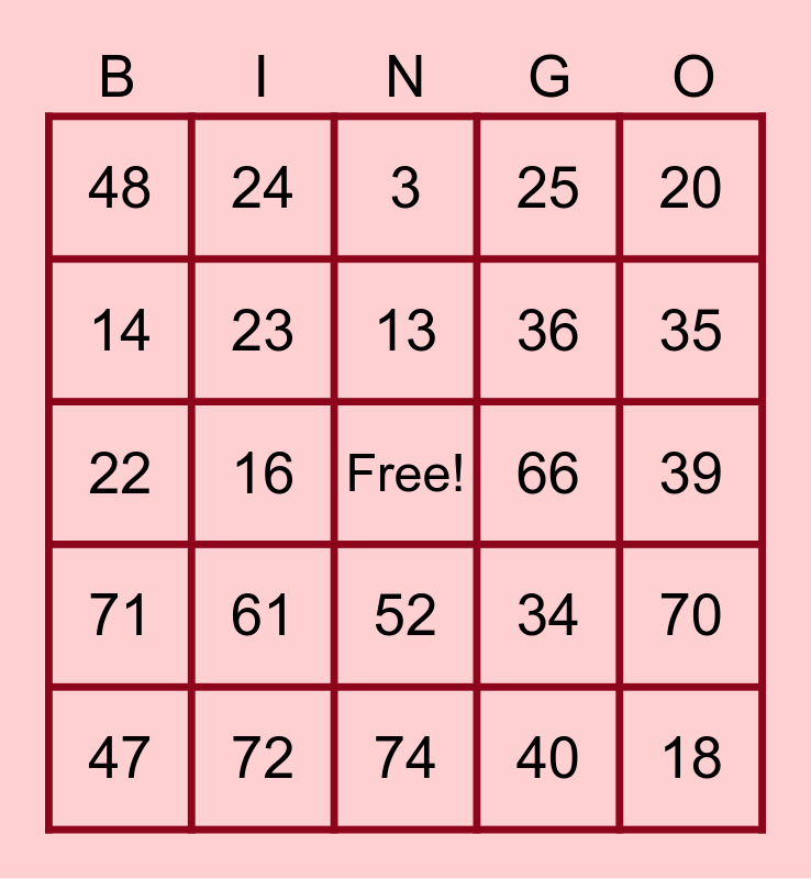 This bingo card has a free space and 75 words: 1, 2, 3, 4, 5, 6, 7, 8, 9, 10, 11, 12, 13, 14, 15, 16, 17, 18, 19, 20, 21, 22, 23, 24, 25, 26, 27, 28, 29, 30, 31, 32, 33, 34, 35, 36, 37, 38, 39, 40, 41, 42, 43, 44, 45, 46, 47, 48, 49, 50, 51, 52, 53, 54, 55, 56, 57, 58, 59, 60, 61, 62, 63, 64, 65, 66, 67, 68, 69, 70, 71, 72, 73, 74 and 75.