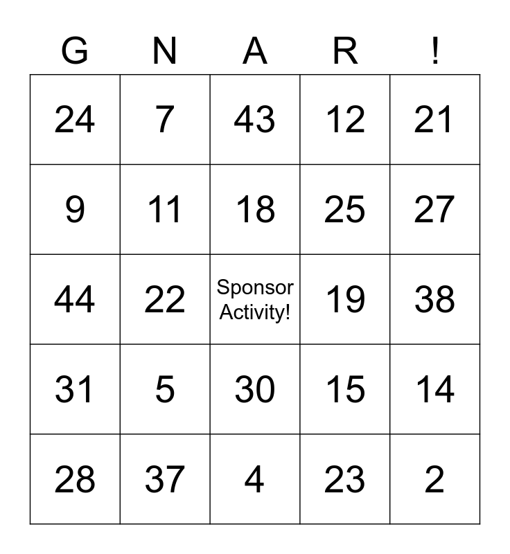 This bingo card has a free space and 47 words: 1, 2, 3, 4, 5, 6, 7, 8, 9, 10, 11, 12, 14, 15, 16, 17, 18, 19, 20, 21, 22, 23, 24, 25, 26, 27, 28, 29, 30, 31, 32, 33, 34, 35, 36, 37, 38, 39, 40, 41, 42, 43, 44, 45, 46, 47 and 48.