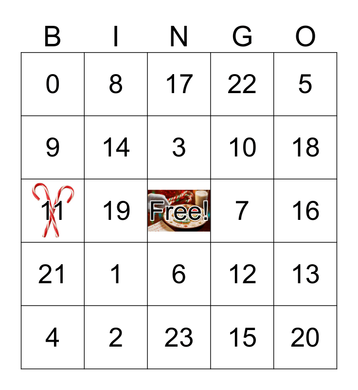 This bingo card has 1 images, a free space and 24 words: 1, 2, 3, 4, 5, 0, 9, 8, 7, 6, 10, 11, 12, 13, 14, 15, 16, 17, 18, 19, 20, 21, 22 and 23.