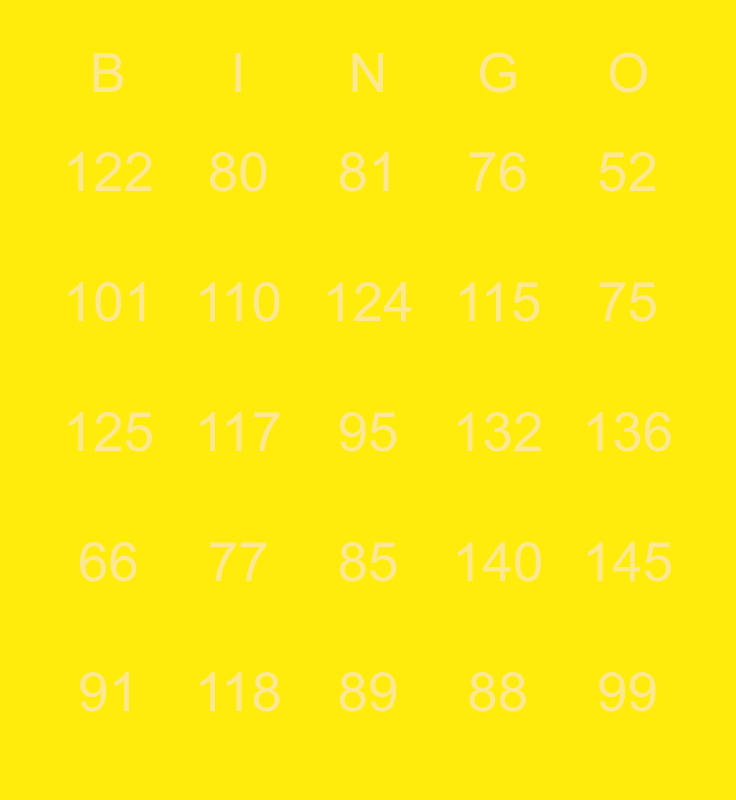 This bingo card has 101 words: 50, 51, 52, 53, 54, 55, 56, 57, 58, 59, 60, 61, 62, 63, 64, 65, 66, 67, 68, 69, 70, 71, 72, 73, 74, 75, 76, 77, 78, 79, 80, 81, 82, 83, 84, 85, 86, 87, 88, 89, 90, 91, 92, 93, 94, 95, 96, 97, 98, 99, 100, 101, 102, 103, 104, 105, 106, 107, 108, 109, 110, 111, 112, 113, 114, 115, 116, 117, 118, 119, 120, 121, 122, 123, 124, 125, 126, 127, 128, 129, 130, 131, 132, 133, 134, 135, 136, 137, 138, 139, 140, 141, 142, 143, 144, 145, 146, 147, 148, 149 and 150.