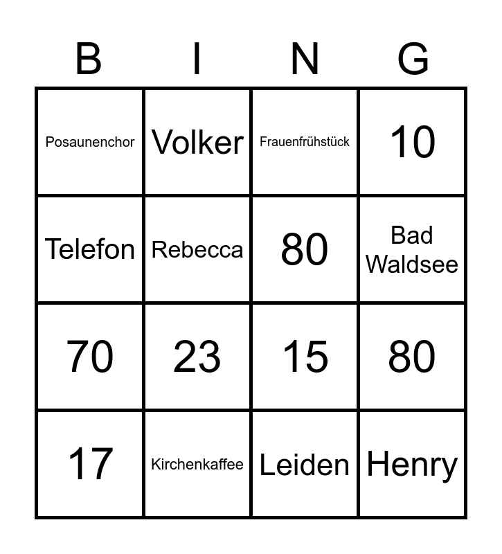 ⚠ This card has duplicate items: Leiden (2), 11 (2), 25 (2), Rebecca (2), Beate (2), 10 (2), 17 (2), Telefon (2), 3 (2), Auszeit (2), Gospel-Chor (2), Posaunenchor (2), Frauenfrühstück (2), 80 (2), Bad Waldsee (2), 70 (2), 43 (2), Henry (2), Kirchenkaffee (2), Mateij (2), 23 (2), 4 (2), 1952 (2), 15 (2), Juni (2), Mai (2), 2020 (2), 2114 (2), Volker (2), Dach (2), 41 (2), Katrin (2), Seniorenkreis (2)