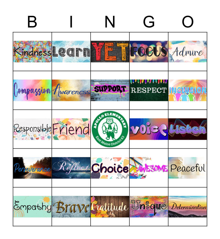 This bingo card has 26 images and a free space.