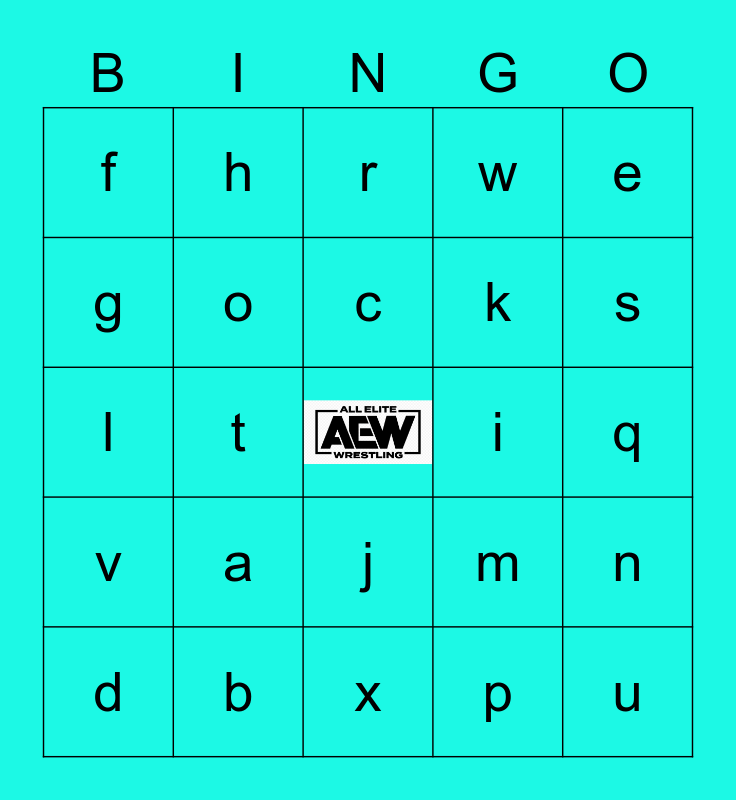 This bingo card has a free space and 24 words: a, b, c, d, e, f, g, h, i, j, k, l, m, n, o, p, q, r, s, t, u, v, w and x.