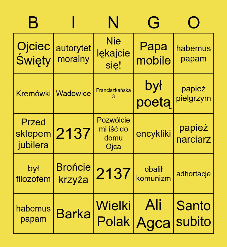 Papieskie Bingo | Papieskie Bingo | Papieskie Bingo | BINGO BEBATOWE 2025 | Nasz Patron