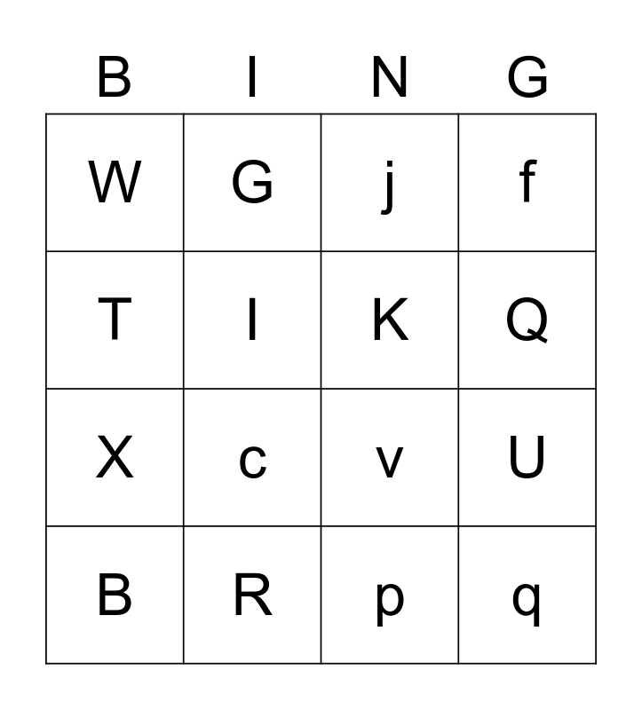 uppercase | uppercase and lowercase letters | uppercase and lowercase letters | Ps Cl Gr Ly Ra Vd | ALPHABET BINGO