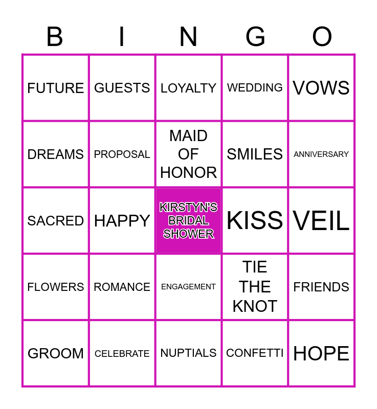 This bingo card has a free space and 72 words: AISLE, GUESTS, HAPPY, SPECIAL DAY, SPEECH, WIFE, WEDDING, SOUL MATES, SMILES, HEARTS, GROOM, ALWAYS, ANNIVERSARY, FUTURE, HONEYMOON, SACRED, TIE THE KNOT, VOWS, TOGETHER, VEIL, ROMANCE, HOPE, FRIENDS, BEAUTIFUL, BEST MAN, BLESSED, BOUQUET, BRIDE, BRIDESMAID, CAKE, CELEBRATE, CEREMONY, CHAMPAGNE, CHERISH, CONFETTI, CONGRATULATIONS, COUPLE, DANCE, DREAMS, DRESS, ENGAGEMENT, ETERNITY, EVER AFTER, FAIRYTALE, FAMILY, FLOWERS, FOREVER, HUGS, HUSBAND, I DO, INVITATIONS, JOY, JUST MARRIED, KISS, LAUGHTER, LOVE, LOYALTY, MAID OF HONOR, MARRIAGE, MEMORIES, MR, MRS, MUSIC, NUPTIALS, PHOTOS, PROMISE, PROPOSAL, RECEPTION, REHEARSAL, RING, TRUST and TUXEDO.