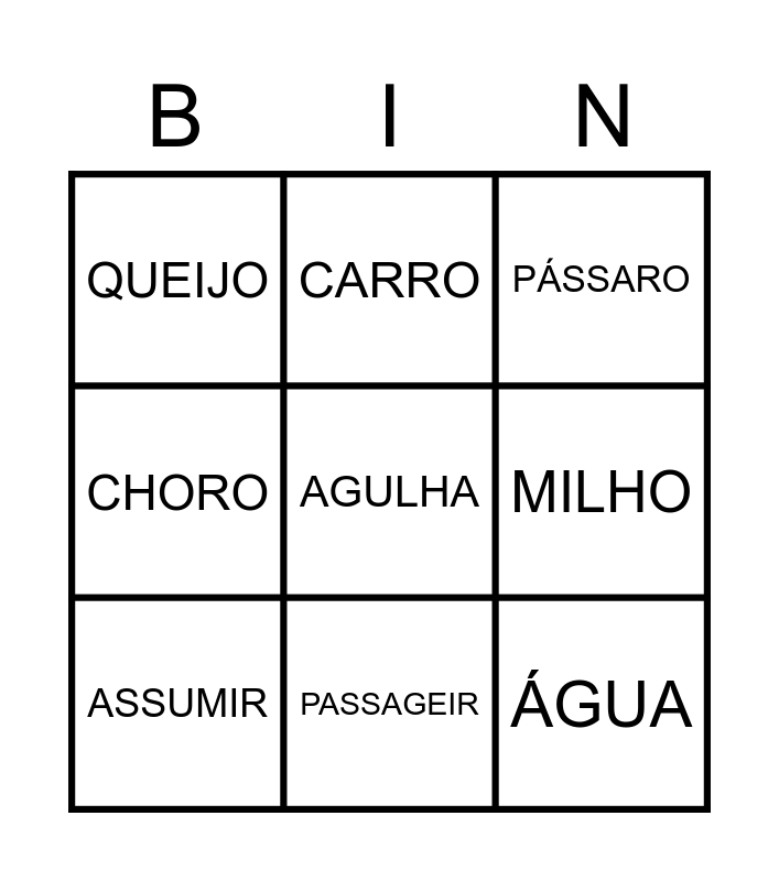 This bingo card has 1 images and 27 words: GUITARRA, FOGUEIRA, QUARTO, QUEIJO, AGULHA, PÁSSARO, NINHO, CORRETO, BOLACHA, CHORO, PASSAGEIR, FERRO, CARROÇA, SONHO, AQUILO, PALHAÇO, ARRISCADO, MILHO, GALINHA, CARRO, CHAVE, ASSUMIR, OLHO, ÁGUA, GUERRA, CHUVA and SENHA.