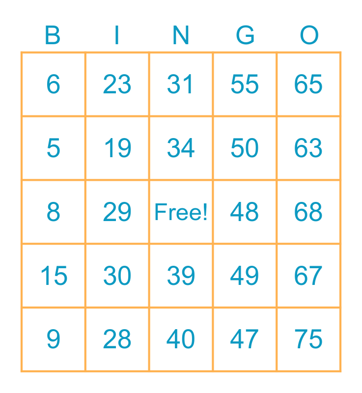 This bingo card has a free space and 75 words: 1, 16, 31, 46, 61, 2, 17, 32, 47, 62, 3, 18, 48, 63, 4, 19, 33, 49, 64, 5, 20, 34, 50, 65, 6, 21, 35, 51, 66, 7, 22, 36, 52, 67, 8, 23, 37, 53, 68, 9, 24, 38, 54, 69, 10, 25, 39, 55, 70, 11, 26, 40, 56, 71, 12, 27, 41, 57, 72, 13, 28, 42, 58, 73, 14, 29, 43, 59, 74, 15, 30, 44, 60, 75 and 45.