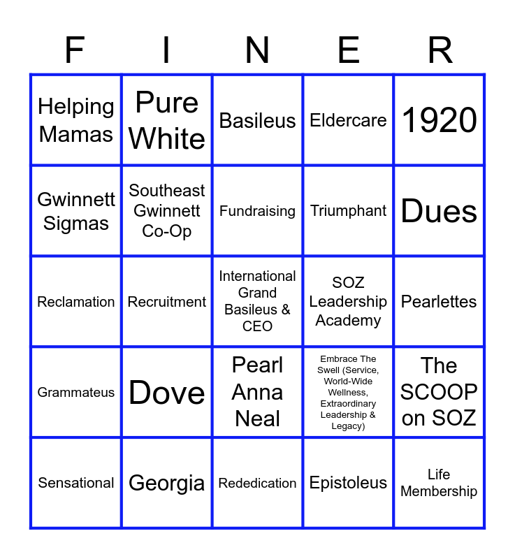 SOZ BINGO | FINER BINGO | FINER BINGO | SOZ "FINER" BINGO | Zeta Bingo