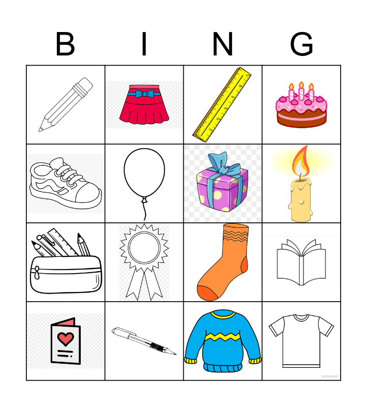 This bingo card has 16 images.
