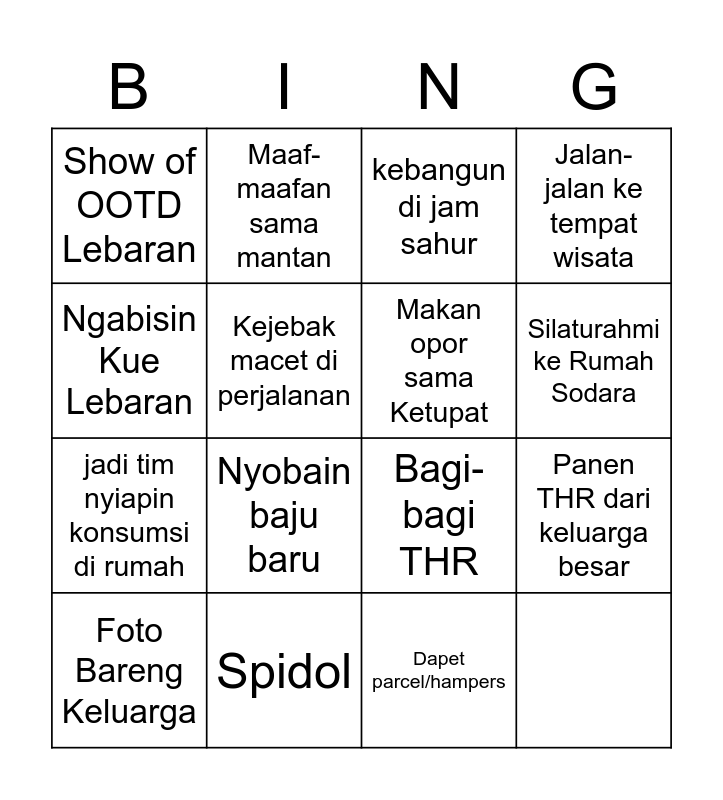 LEBARAN BINGO 2022 | Bingo Lebaran r/ Indonesia 2022 by U/Martian_Catnip | RAYA RAYA | Raya 2023 | Sehari di Kota - Bingo!