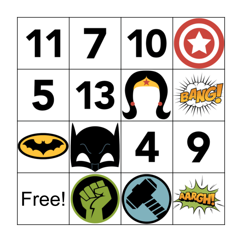 Avengers Assemble Bingo Card