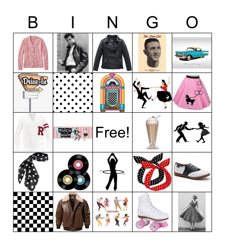 This bingo card has 24 images and a free space.