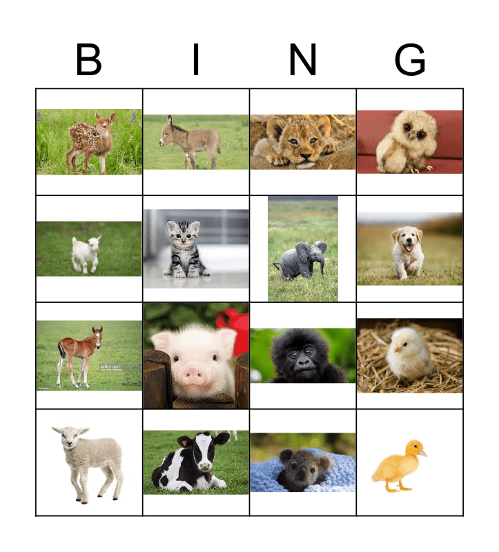 Baby Animals Bingo Card