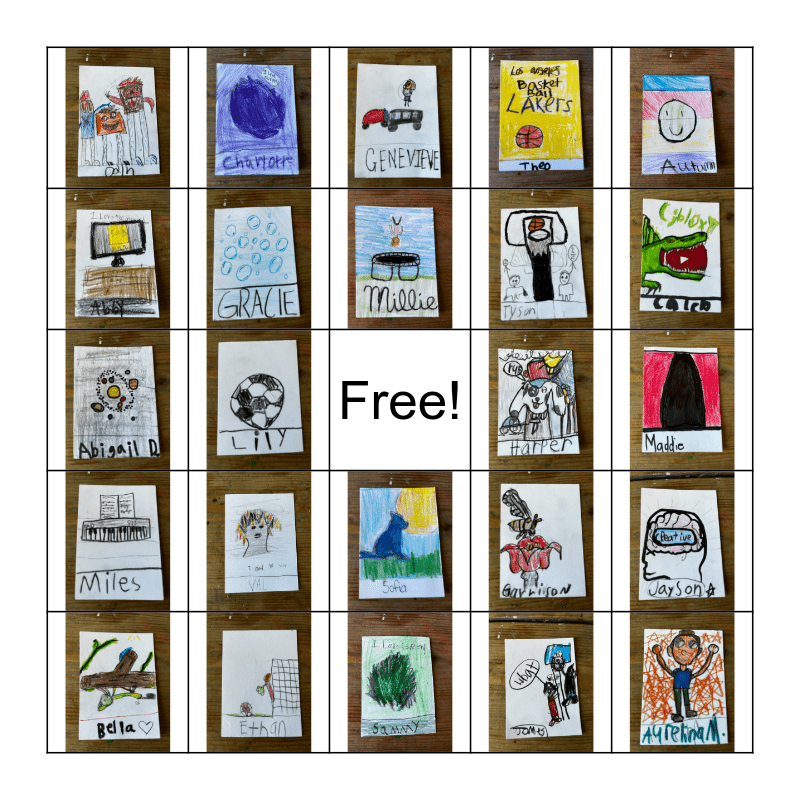 This bingo card has 25 images and a free space.