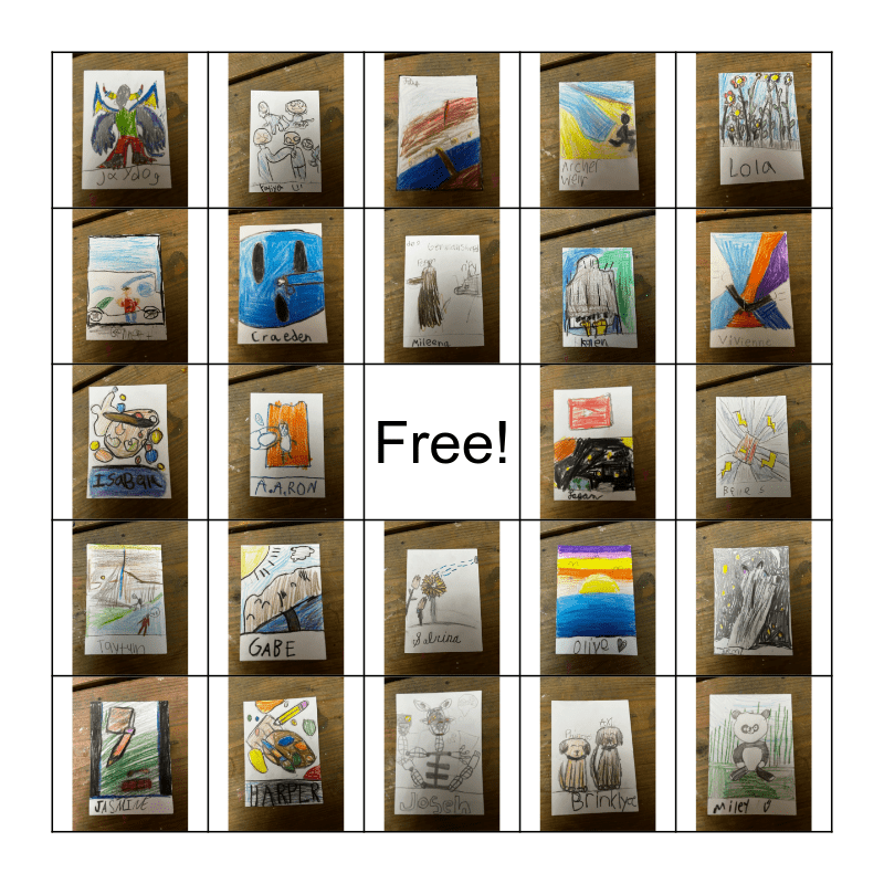 This bingo card has 26 images and a free space.