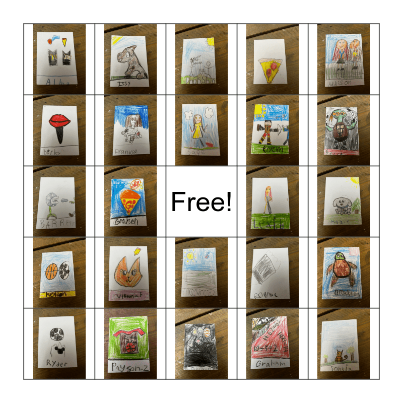 This bingo card has 24 images and a free space.