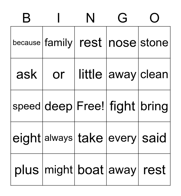 This bingo card has a free space and 88 words: put, rock, take, went, house, straw, planet, money, beak, those, grapes, rabbit, said, bring, road, little, rain, sky, wings, close, plate, prize, speed, state, away, trip, roof, cool, night, birds, rest, nose, sad, lot, always, ask, because, between, brother, clean, deep, dress, each, every, fight, give, grow, after, animal, away, been, blend, buy, clock, deer, drip, eight, family, first, goat, happy, home, kind, lion, look, might, night, or, plus, rest, shape, slide, soon, stone, again, another, back, before, boat, call, cold, dish, drive, eleven, fast, found, goes and help.