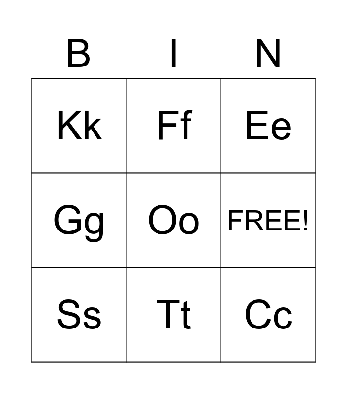 This bingo card has 27 words: Aa, Bb, Cc, Dd, FREE!, Ee, Ff, Nn, Zz, Pp, Ii, Gg, Qq, Rr, Jj, Hh, Ss, Tt, Uu, Kk, Mm, Vv, Ww, Yy, Ll, Oo and Xx.