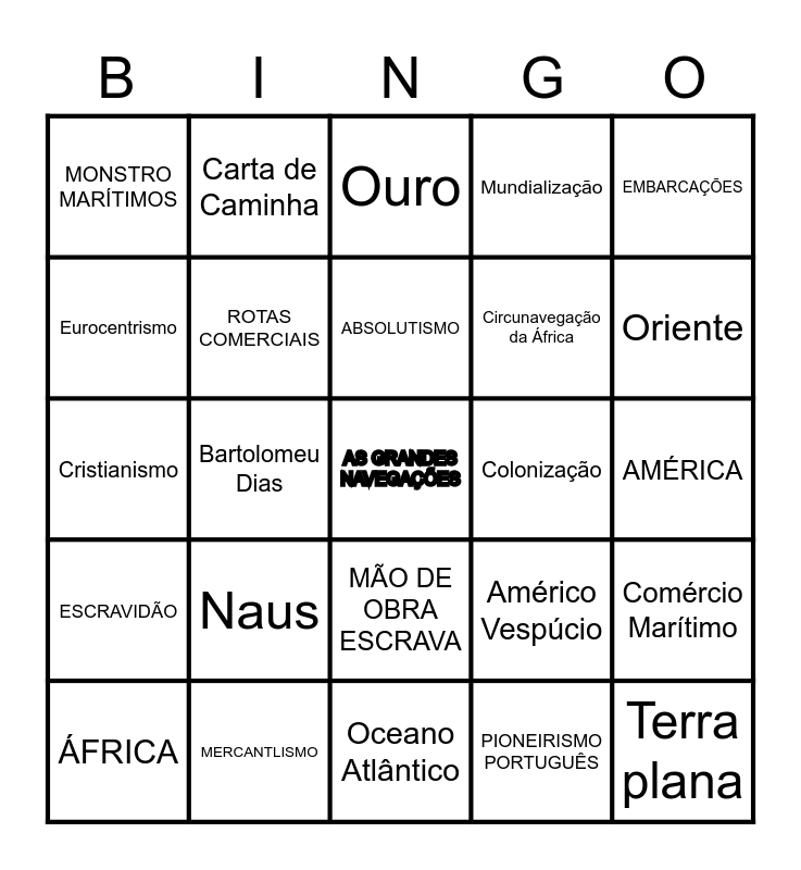 AS GRANDES NAVEGAÇÕES | BINGO GRANDES NAVEGAÇÕES | imperialismo | 6.3 Review | Vamos conhecer a nova turma! Quem...?