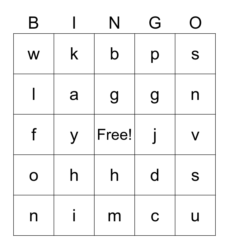 This bingo card has a free space and 24 words: h, i, g, n, s, w, l, k, j, h, g, f, d, s, a, c, v, b, n, y, u, o, p and m.