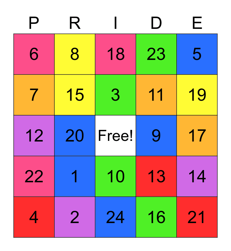 This bingo card has a free space and 24 words: 1, 2, 3, 4, 5, 6, 7, 8, 9, 10, 11, 12, 13, 14, 15, 16, 17, 18, 19, 20, 21, 22, 23 and 24.