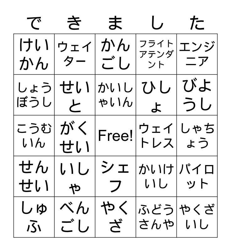 Year 10: Occupations Bingo | Hiragana Bingo #3 | しごと | Genki 1 Lesson 1 Vocab | 総大会