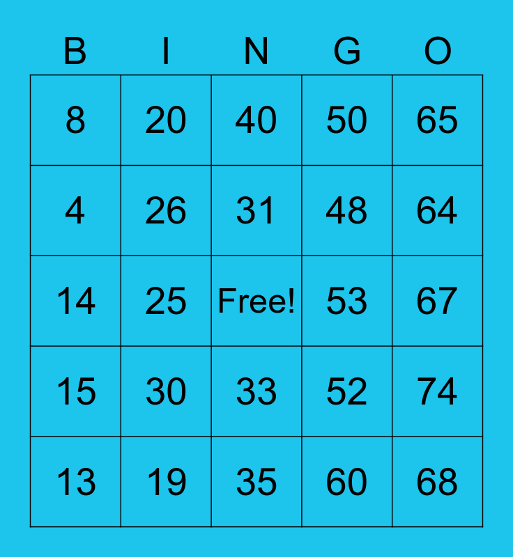 This bingo card has a free space and 75 words: 1, 16, 31, 46, 61, 2, 17, 32, 47, 62, 3, 18, 33, 48, 63, 4, 19, 34, 49, 64, 5, 20, 35, 50, 65, 6, 21, 36, 51, 66, 7, 22, 37, 52, 67, 8, 23, 38, 53, 68, 9, 24, 39, 54, 69, 10, 25, 40, 55, 70, 11, 26, 41, 56, 71, 12, 27, 42, 57, 72, 13, 28, 43, 58, 73, 14, 29, 44, 59, 74, 15, 30, 45, 60 and 75.
