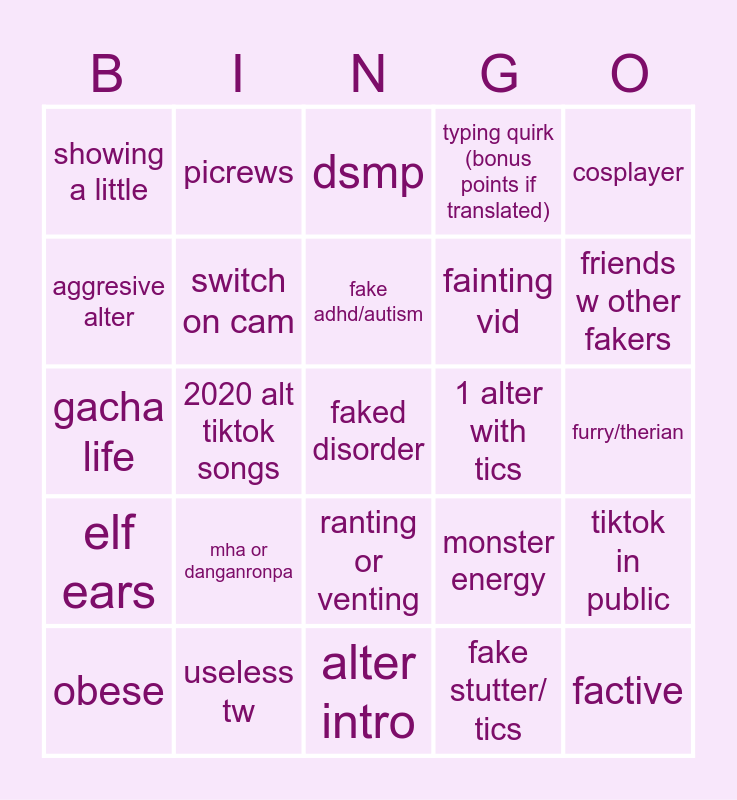 fake disprder cringe | Fake DID (And more!!!) | fake disorder cringe | fake disorder cringe | Ultimate Fake Disorder Cringe Bingo