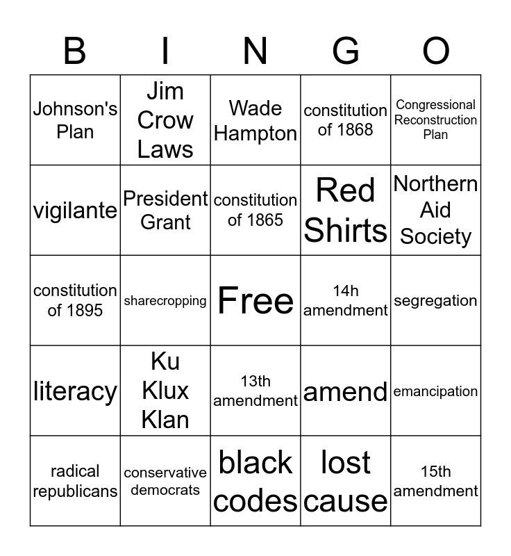 Reconstruction | Reconstruction | Reconstruction Era | reconstruction bingo | Reconstruction Era