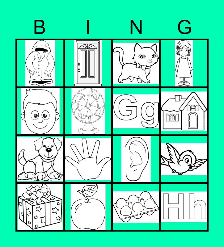 This bingo card has 16 images.