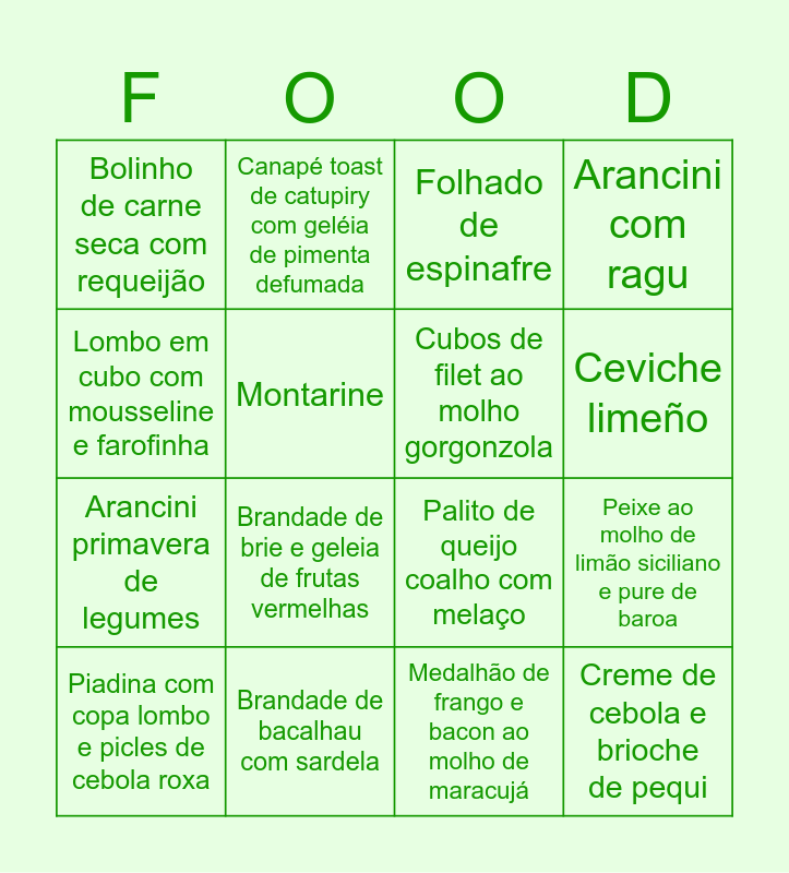 Bingo dos rango | COMIDA | Comida | Binsex-saude-Serie 1 | Portuguese Food Bingo