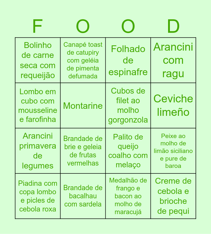 Bingo dos rango | COMIDA | Comida | Binsex-saude-Serie 1 | Portuguese Food Bingo