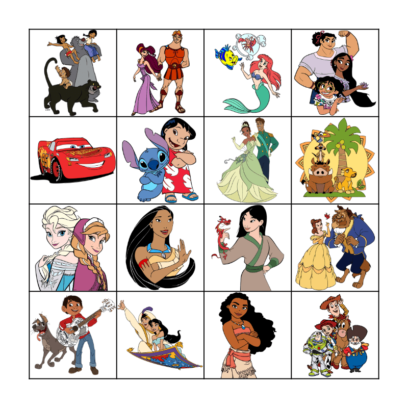 This bingo card has 16 images.