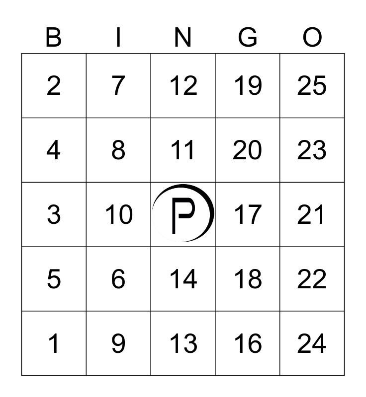 This bingo card has a free space and 24 words: 1, 6, 11, 16, 25, 2, 7, 12, 17, 21, 3, 8, 18, 22, 4, 9, 13, 19, 23, 5, 10, 14, 20 and 24.