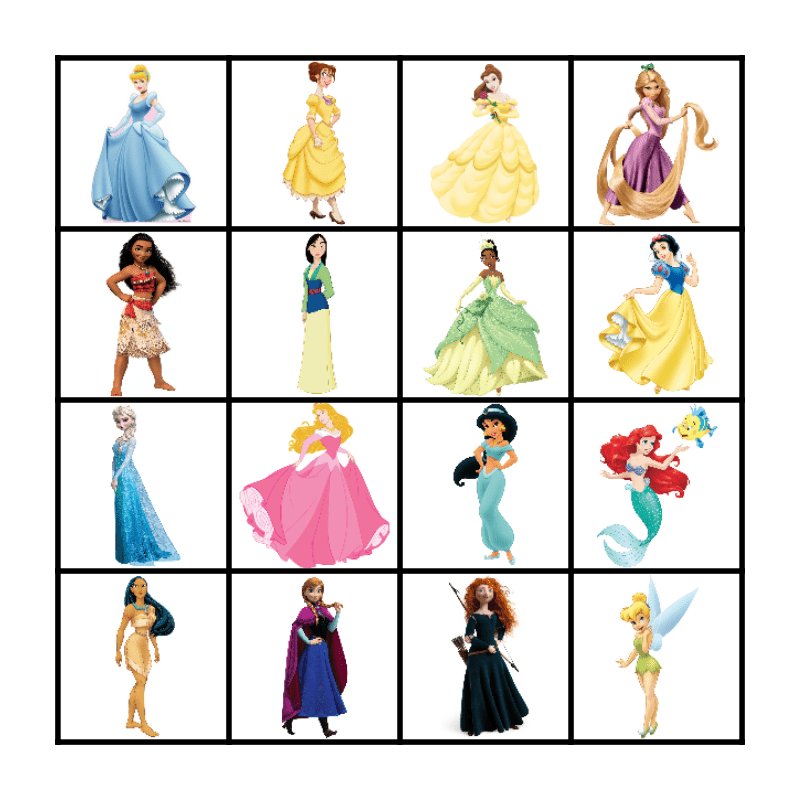 Disney Princess Bingo Card