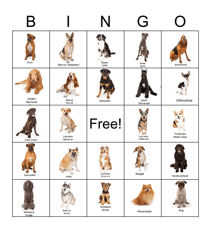 Dog Breed Bingo Card