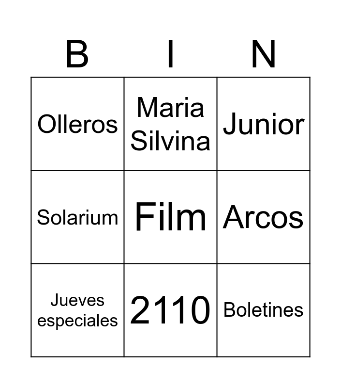 This bingo card has 50 words: Free!, Daniel Stell, Headmistress, Karolita, Nacional, Bilingue, Olleros, O’Higgins, Arcos, Harrods, Geba, Junior, Kinder, Senior, Los precep, Estudiantes, Docentes, Padres, MasterCollegeOk, 2110, 1428, Caroline, Maria Silvina, Boletines, Bimestres, Actos, Érica, Concert, Film, Drama, Turno Tarde, Recreo, Teacher’s Day, Halloween, Sala de profes, Comedor, Sandra, Josefina, Sala de Música, Jueves especiales, Pebetes, LICA, Recepcionista, Secretarias, Pisano, Solarium, Cecilia Molino Towers, Las Dires de Estudios, Master and College.