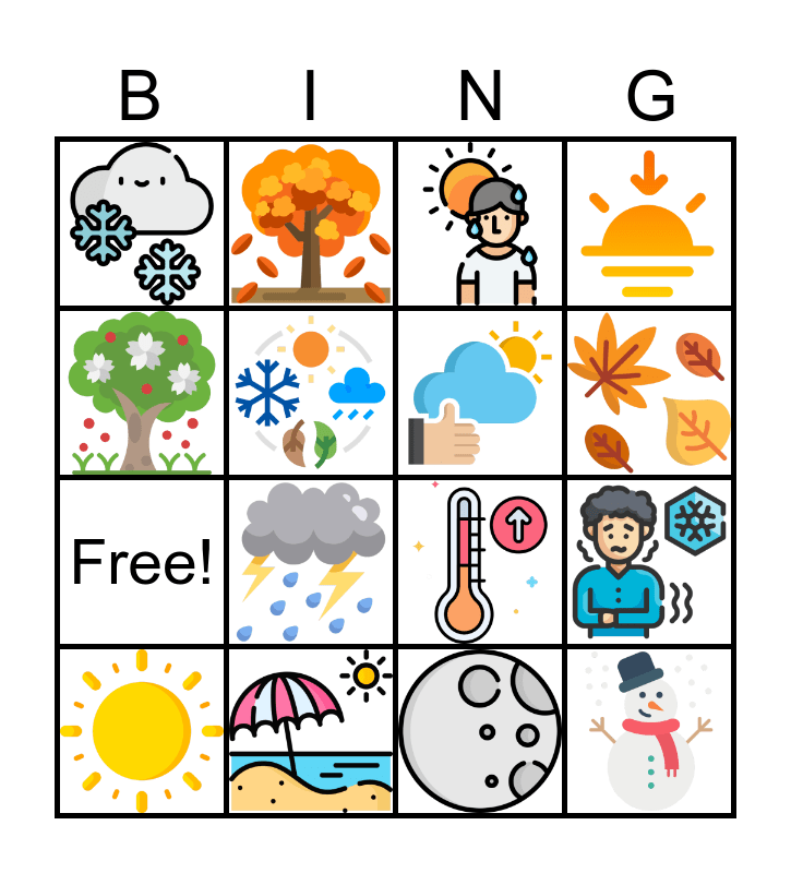 This bingo card has 19 images and 1 words: Free!.
