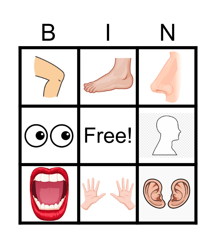 This bingo card has 8 images and a free space.
