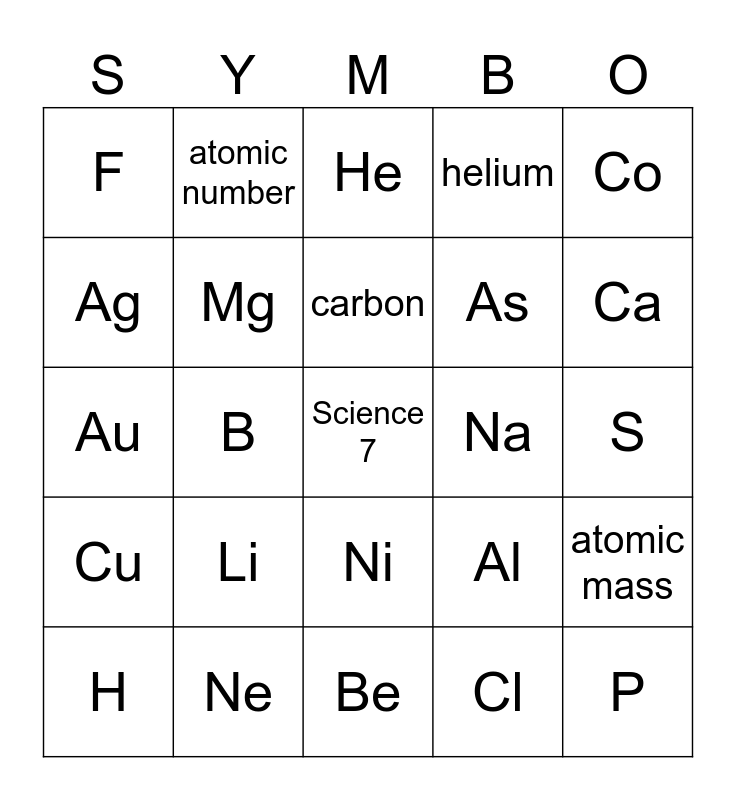 Atom Bingo | Atom Bingo | Gilchrist Atom Bingo | Gilchrist Atom Bingo | S C I E N C E