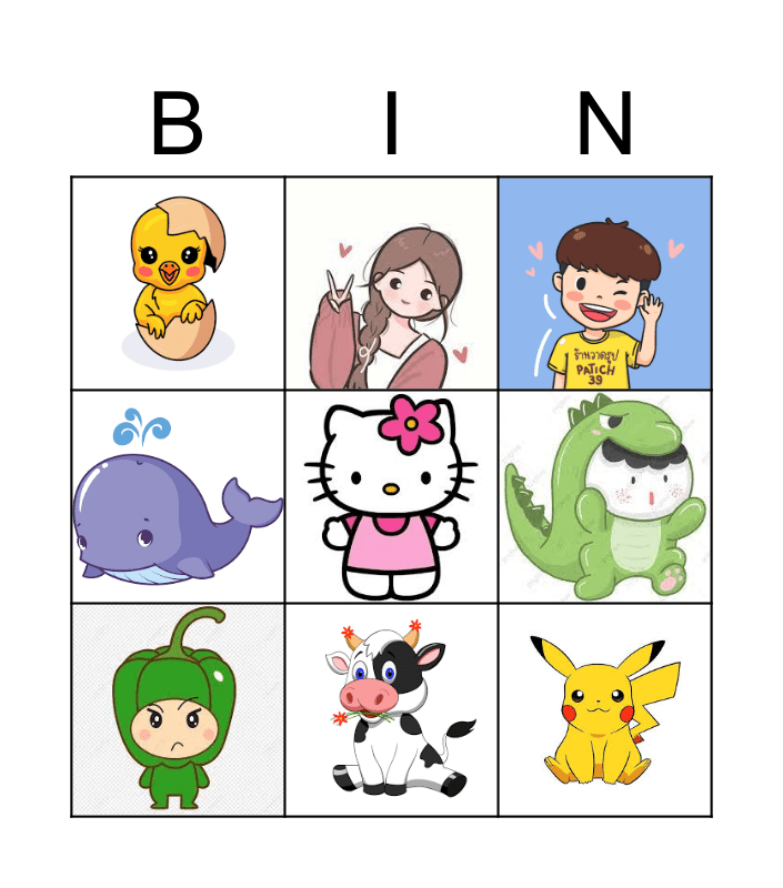 This bingo card has 8 images and a free space.