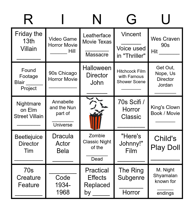 RINGU Horror Movie Bingo | Halloween 2024 | Movie and Film Vocab_ESL | Movie Bingo | UK Radio station bingo