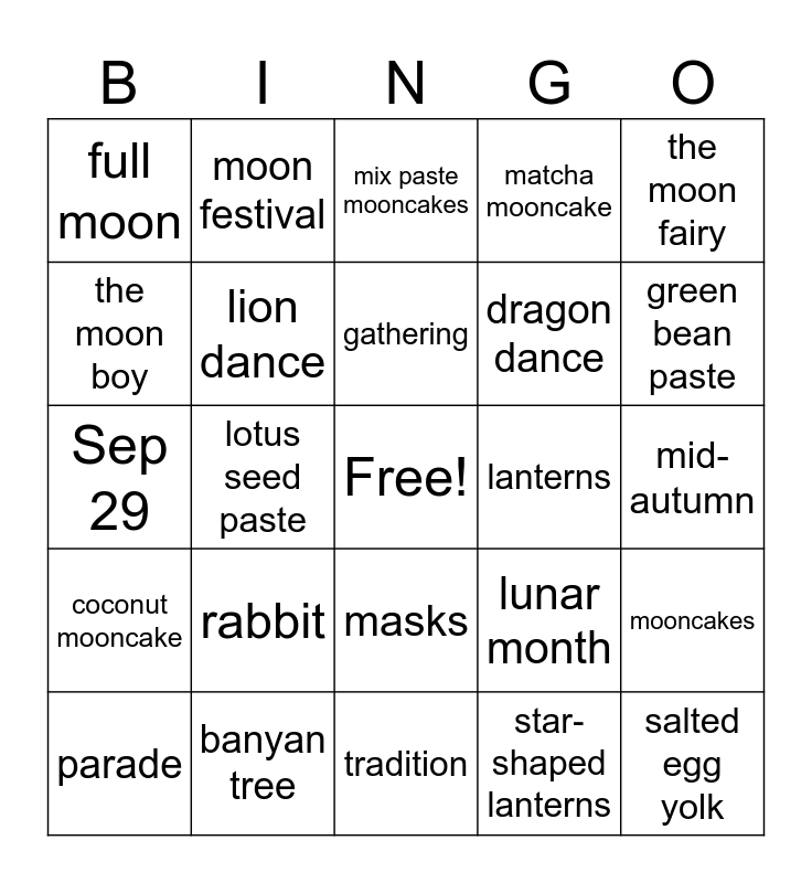 Mid-Autumn Festival | Mid-Autumn Festival | Mid-Autumn Bingo | The Mid-Autumn Festival | The Mid-Autumn Festival