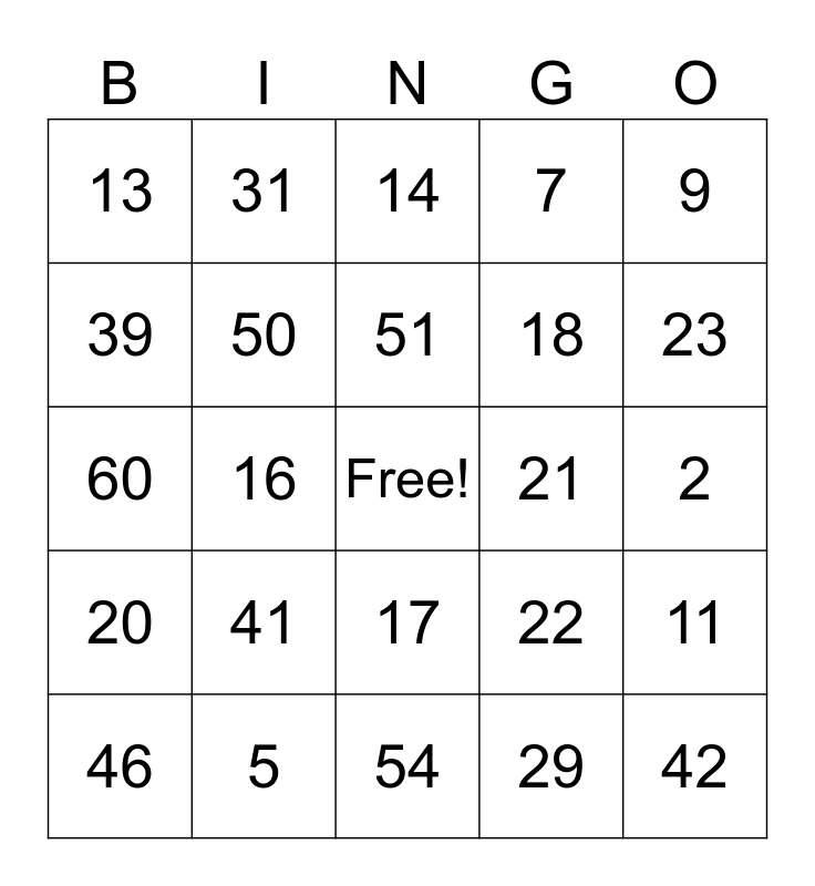 This bingo card has a free space and 69 words: 1, 2, 3, 4, 5, 6, 7, 8, 9, 10, 11, 12, 13, 14, 15, 16, 17, 18, 19, 20, 21, 22, 23, 24, 25, 26, 27, 28, 29, 30, 31, 32, 33, 34, 35, 36, 37, 38, 39, 40, 41, 42, 43, 44, 45, 46, 47, 48, 49, 50, 51, 52, 53, 54, 55, 56, 57, 58, 59, 60, 61, 62, 63, 64, 65, 66, 67, 68 and 69.