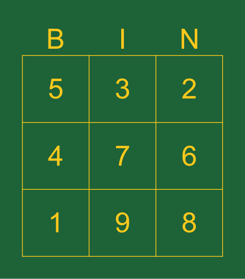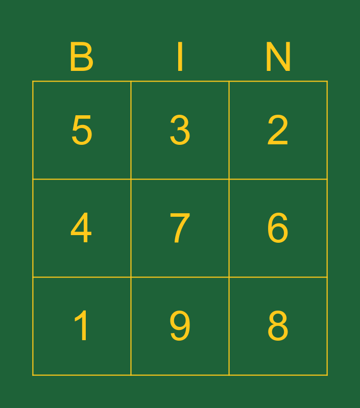This bingo card has 9 words: 1, 2, 3, 4, 5, 6, 7, 8 and 9.