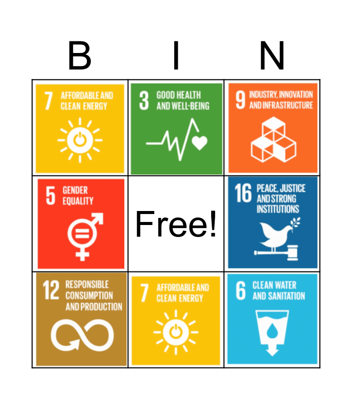 UN Sustainable Development Goals Bingo