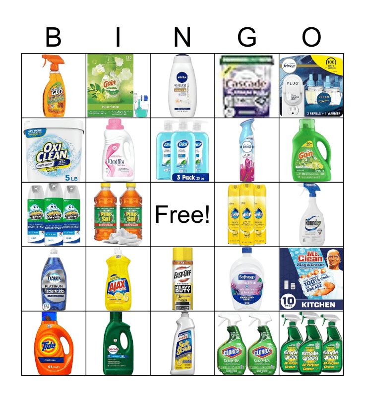 This bingo card has 24 images and a free space.