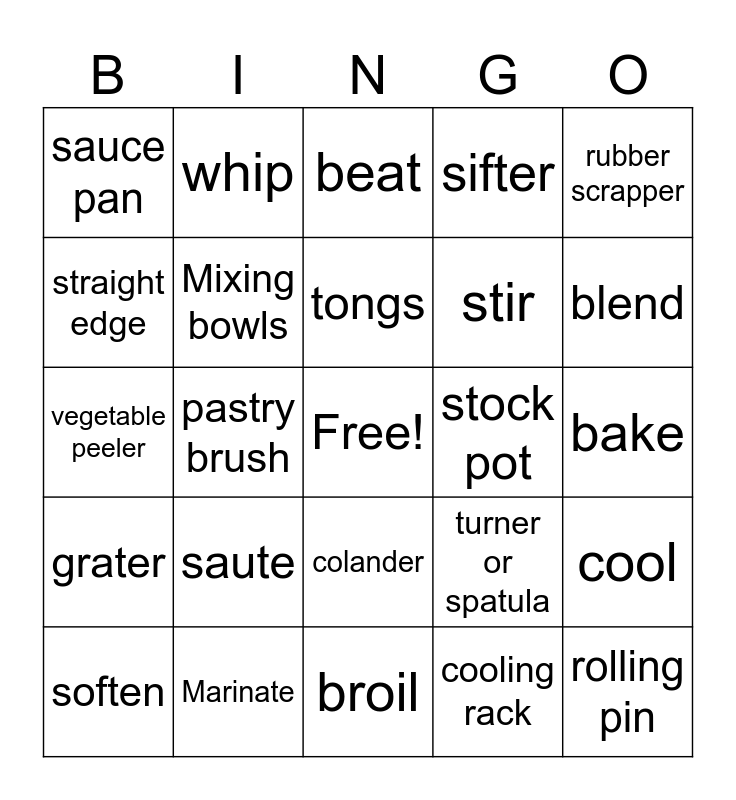 Tools/Terms | Tools/Terms | Utensils Bingo | tools/terms | Review Bingo